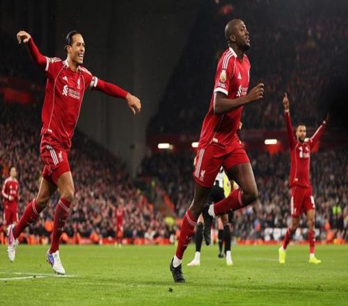 动容!利物浦1米94黑塔进球告慰亡父,跪滑+热泪盈眶,全队送拥抱